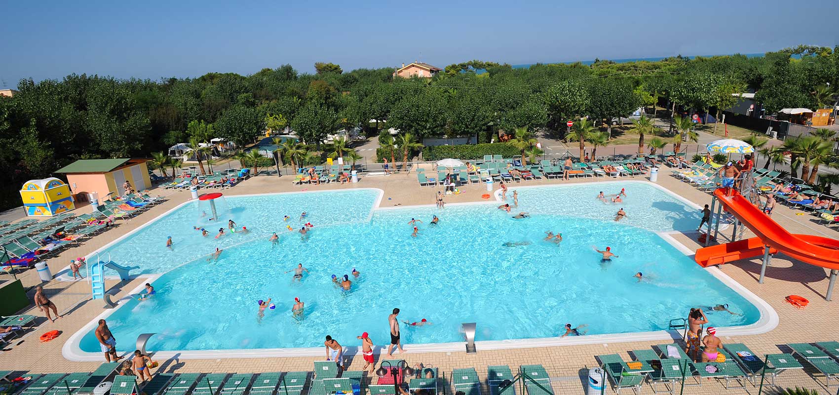 Het zwembad met een antislip bodem bestaat uit drie niveaus (30, 60, 130 cm), Er is een waterglijbaan en een deel van het zwembad is uitgerust met een hydro massagesysteem. En voor de veiligheid zijn er steeds badmeesters aanwezig. Het strand is vrij voor alle gasten van Camping Don Antonio en bestaat uit fijn zand.