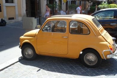 Tijdens mijn weekendje Rome was ik te gast bij een Italiaans meisje, genaamd Catia. Ik logeerde bij Catia thuis en zij en haar vriend namen mij een heel weekend op sleeptouw. Superlief! Temeer omdat we elkaar nog helemaal niet kenden. Het was een enorm leuk weekend waarin zij mij vrijwel alle belangrijke bezienswaardigheden hebben laten zien: Het Colosseum, De Trevifontein, De Engelenburcht, Het Vaticaan, het Pantheon, de Spaanse Trappen…, noem maar op! Ook bezochten wij een van de zeven heuvelen waarop Rome gebouwd is, met het mooie uitzicht en om 12.00 uur het traditionele kanonschot. Dit alles gebeurde met een handig klein autootje – waarschijnlijk zal het een Fiat ‘Cinquecento’ zjin geweest, welke ze in allerlei smalle straatjes konden parkeren. Een praktische manier om vlot de stad te verkennen.