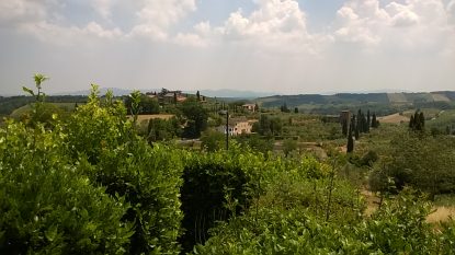 Ook het hotel bleek een goede keuze, op loopafstand van het Middeleeuwse centrum en op de weg er naartoe ligt een restaurant/bar met mooi uitzicht. Overdag is het gesloten maar ‘s avonds en ‘s nachts is het een druk bezochte plek met uitzicht over de vallei. Het uitzicht vanaf het hotel zelf is echt magnifique! Het mooie en niet al te dure hotel, met zwembad en mooie weide met ligbedden en een terras, biedt uitzicht op het glooiende Toscaanse landschap.