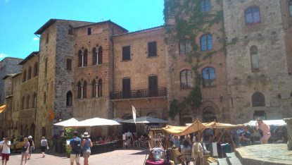 Een van de leukste plaatsen in Toscane vind ik nog steeds San Gimignano. San Gimignano is een Middeleeuws stadje tussen de glooiende heuvels van Toscane. Het is bekend om zijn 14 torens. Ik ben er in mijn jonge jaren ooit geweest, toen ik een maand in Pisa verbleef om daar een cursus Italiaans te doen. Het Middeleeuwse vestingstadje heeft toen een mooie indruk bij me achtergelaten en daarom ben ik het afgelopen jaar met een vriendin tijdens een korte “giro di Toscana” weer eens teruggegaan. Tot grote vreugde van ons beiden, want het is gewoon een prachtig stadje en ook nog geweldig gelegen! Ik genoot met volle teugen van het rondlopen en fotograferen van de Middeleeuwse straten en een prachtig plein (Piazza della Cisterna) met in het midden een flinke waterput. Het plein wordt omringd door door mooie oude huizen en soms staat er een marktje op het plein, wat zorgt voor een gezellige sfeer en het plein eveneens nog wat extra charme geeft.