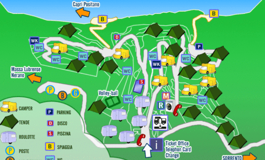 Panoramische kampeerplaatsen met zicht op de Vesuvius en de Golf van Napels gelegen in een dichte vegetatie van olijven, citroenen, en eeuwenoude eiken en populieren, uitermate geschikt voor wanneer u opzoek bent naar een camping in de natuur. De kampeerplaatsen zijn voorzien van een elektrische 6 ampére aansluiting en zijn in de buurt gelegen van de sanitaire voorzieningen, met douche en gratis warm water, wastafels voor de persoonlijke hygiene, wasbakken voor het linnengoed en het keukengerei.