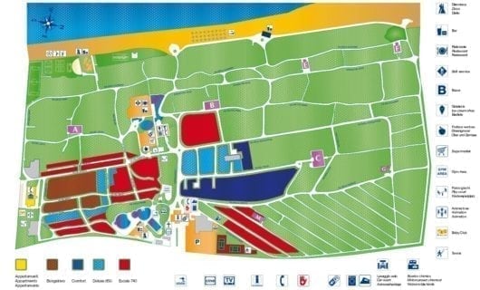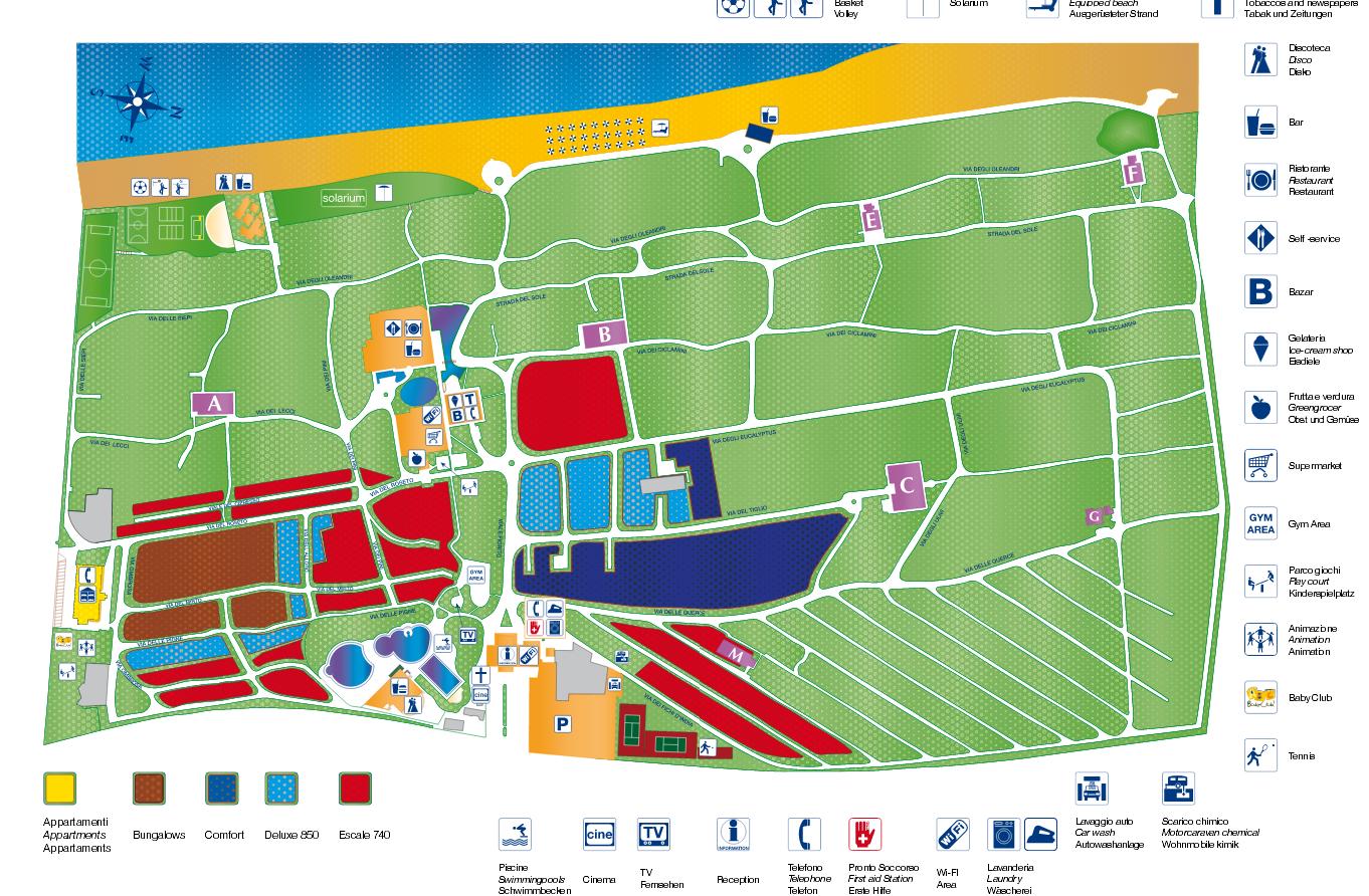 Op deze camping zijn de volgende faciliteiten: IJskraam, bars, restaurants, pizzeria, camping supermarkt, krantenwinkel, discotheek, animatie, speeltuin, bioscoop, strand, tennisbanen, zwembaden, voetbalveld, basketbal, volleybal en windsurfen.