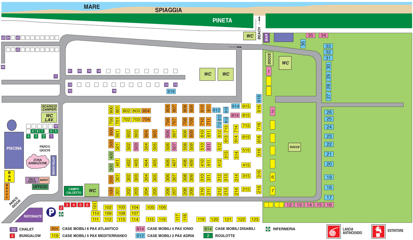 Het wordt omgeven door de natuur en ligt in het natuurpark Foce del Bevano, een oase met 3 kilometer ongerept strand waar de lokale vegetatie en dieren in het wild worden beschermd. Het strand van Lido di Dante is verkozen als een van de 10 mooiste en meest ongerepte stranden van Italië. Het strand is vanaf de camping te bereiken met een wandeling van 200 meter door het dennenbos.