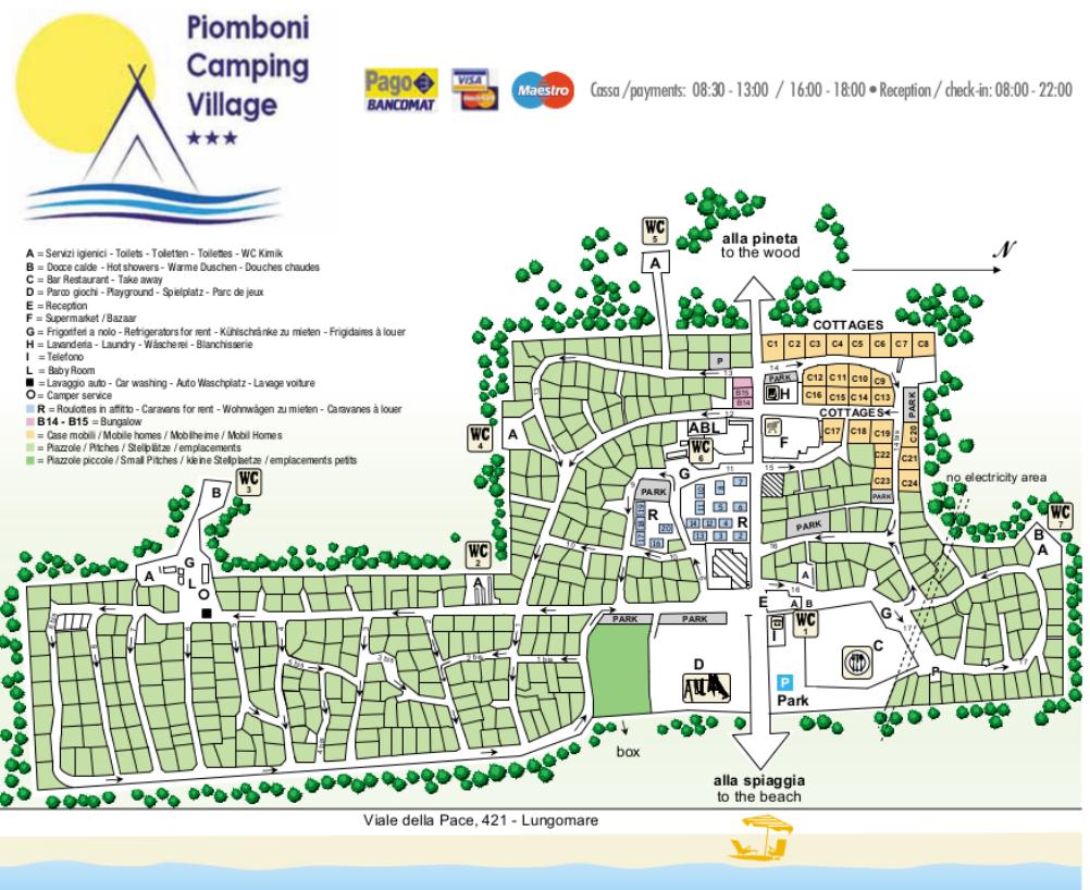Camping International Piomboni biedt stenen bungalows aan en verhuurt ook stacaravans. Op de camping vindt u verschillende faciliteiten zoals een pizzeria, bar, camping supermarkt en een wasserij. De bushalte is dichtbij zodat u gemakkelijk de omringende plaatsen en bezienswaardigheden kunt bezoeken.