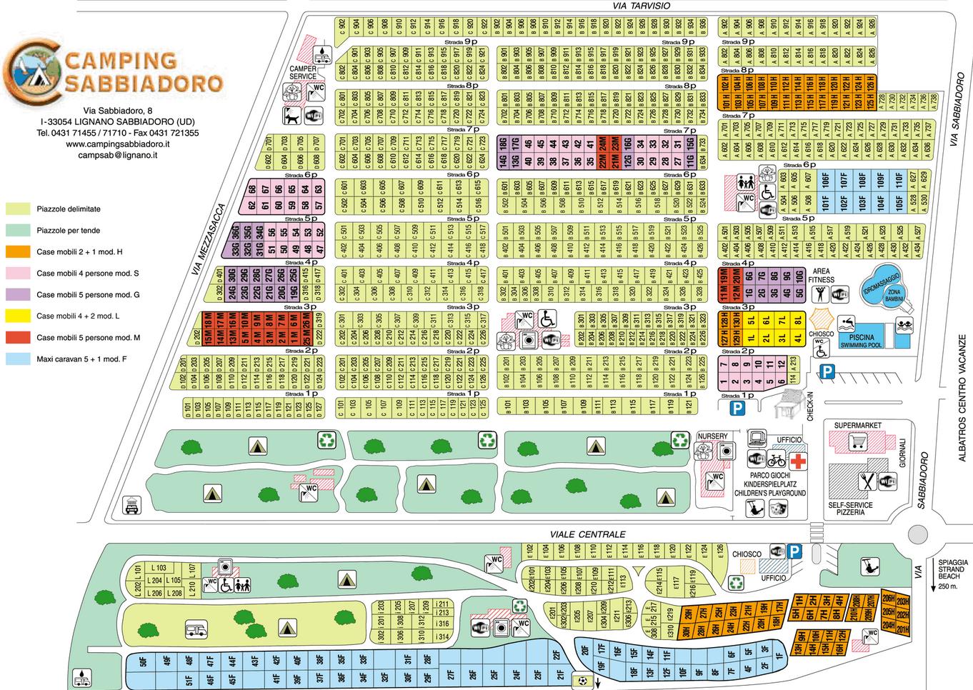Camping Sabbiadoro in Lignano is gelegen temidden van het groen van een prachtig pijnbomenbos en een weelderig begroeid, schaduwrijk park. U verblijft hier in een oase van rust, op loopafstand van het centrum van Lignano en vlakbij een goudgeel strand dat garant staat voor ontspanning en vermaak.