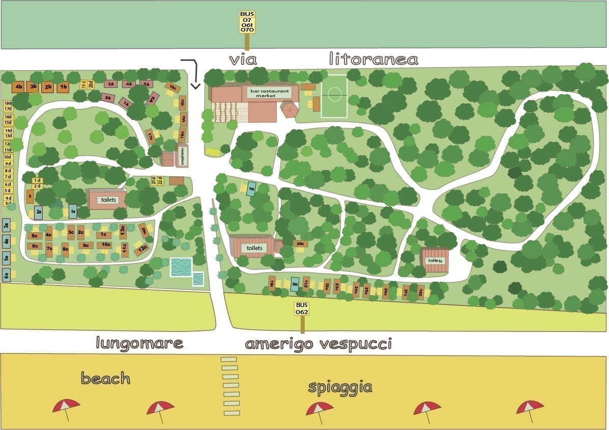 Camping Internazionale Castelfusano ligt aan zee nabij Rome, zeer geschikt voor een combinatie van activiteiten en ontspanning. Reserveer rechtstreeks!