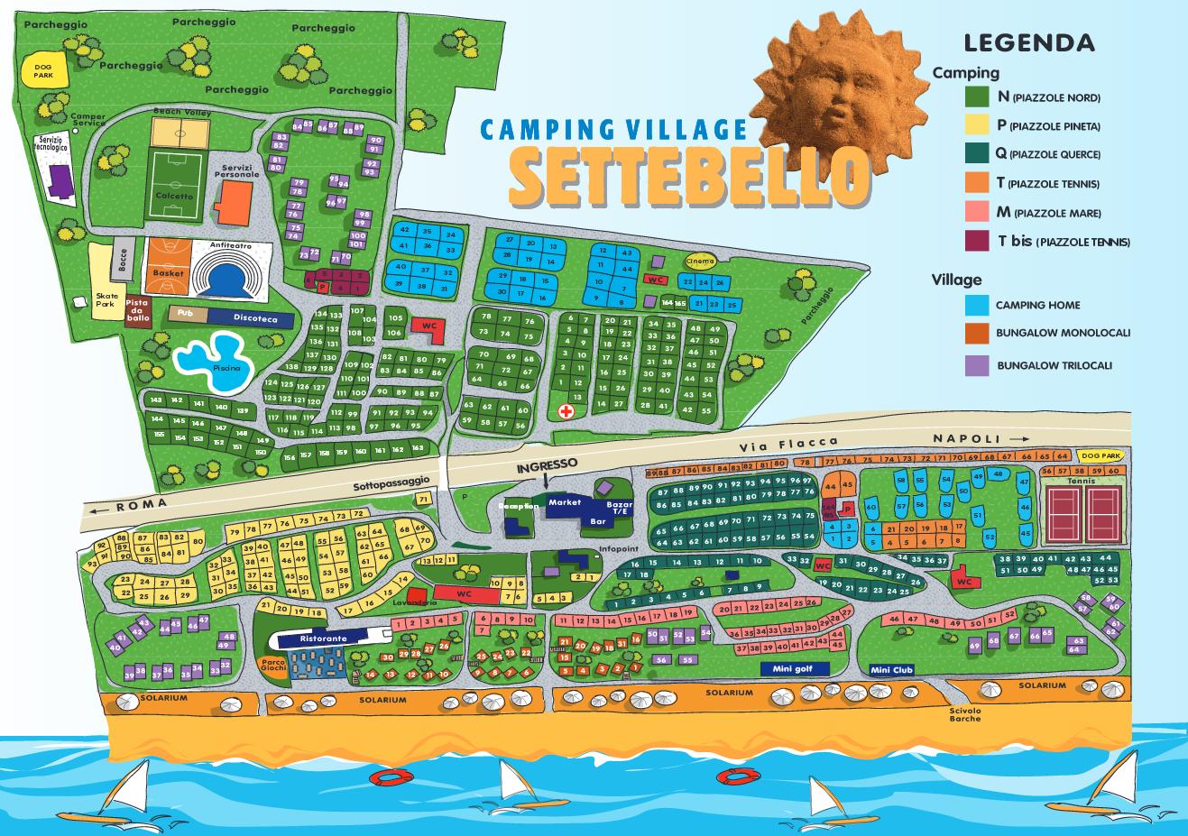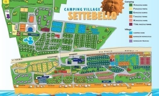 Settebello Camping Village in Lazio ligt in het dorpje Salto di Fondi is de ideale plek om uw vakantie door te brengen in de open lucht gecombineerd met alle schoonheid van de natuur en comfort van de camping. Camping Settebello is slechts 500 meter gelegen van het strand in een prachtige omgeving. De schaduwrijke camping staat vol met vegetatie van eiken, populieren en eucalyptusbomen.