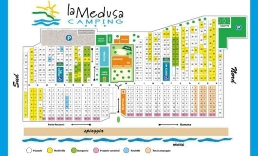Camping La Medusa, gelegen in Macerata. De camping heeft een eigen strand. Reserveer hier rechtstreeks bij de camping zelf!