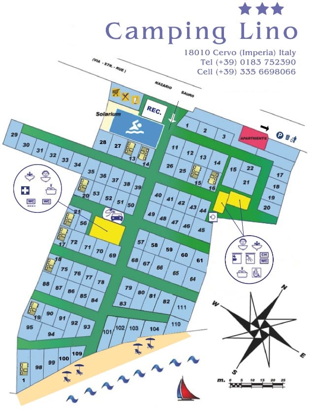 Het vakantiepark is ontworpen om te voldoen aan de behoeften en wensen van plezier en ontspanning van jong en oud met een zwembad met hydromassagebad, solarium met ligbedden en parasols, een markt en bar, pizzeria en restaurant. Camping Lino is gelegen in een schitterende omgeving. Geniet hier aan zee van de rust en maak mooie fiets- of wandeltochten.