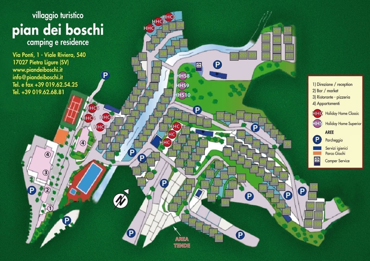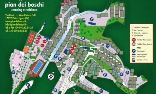 Camping Pian dei Boschi in Pietra Ligure ligt in een groene omgeving, op een rustige plek en slechts 700 meter vanaf de kust de Bloemenriviera. Deze grote camping heeft vriendelijk personeel, de sfeer is daardoor gemoedelijk maar wel typisch Italiaans. Het plaatsje Pietra Ligure is een mooie badplaats.