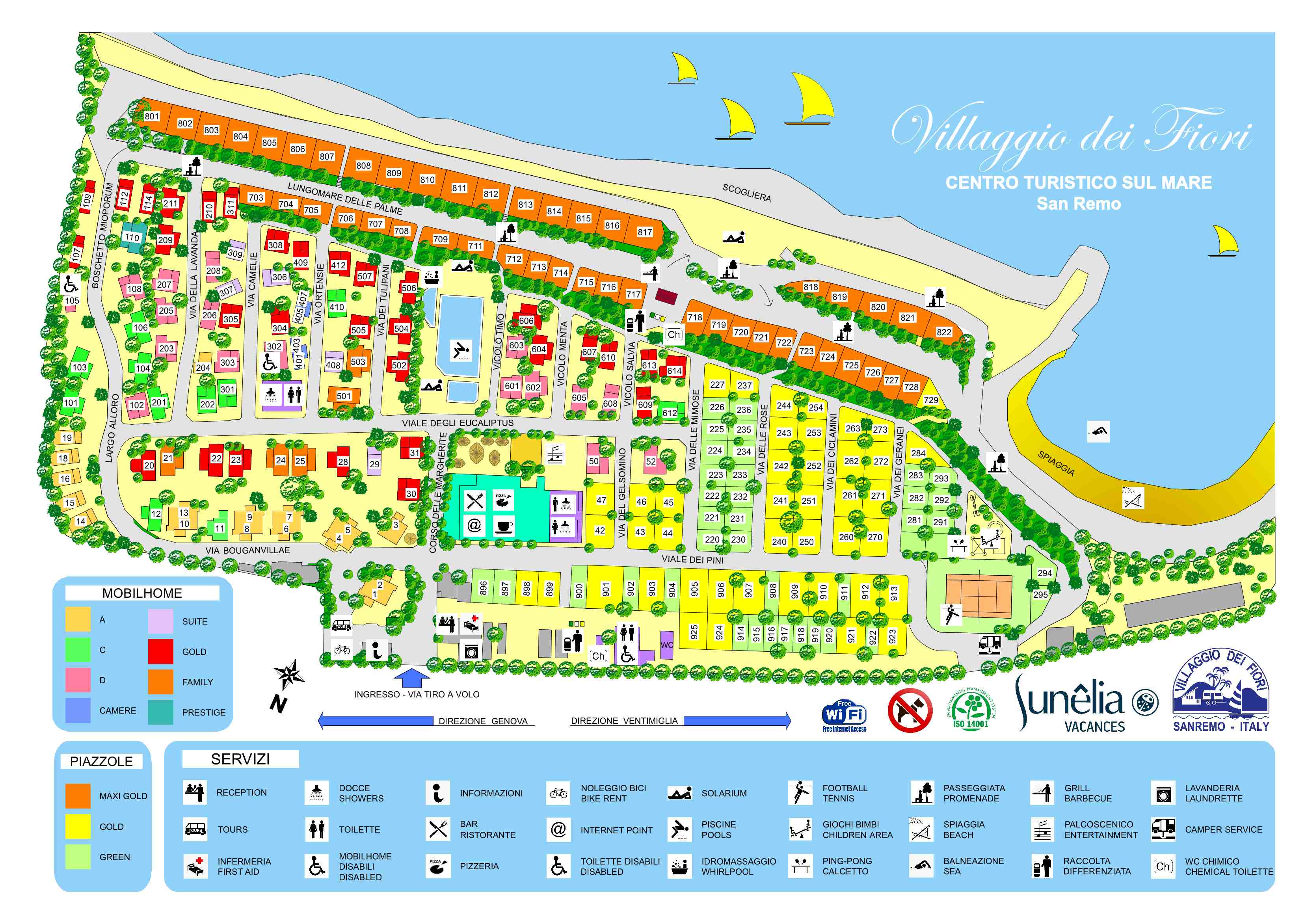 Camping Villaggio dei Fiori is een knusse camping gelegen bij zee aan de rand van het mooie stadje San Remo met haar historische centrum. Het is een gezellige camping en is geschikt voor jong en oud. Er zijn veel mogelijkheden voor uitstapjes en sportieve activiteiten aan de Bloemenriviera.