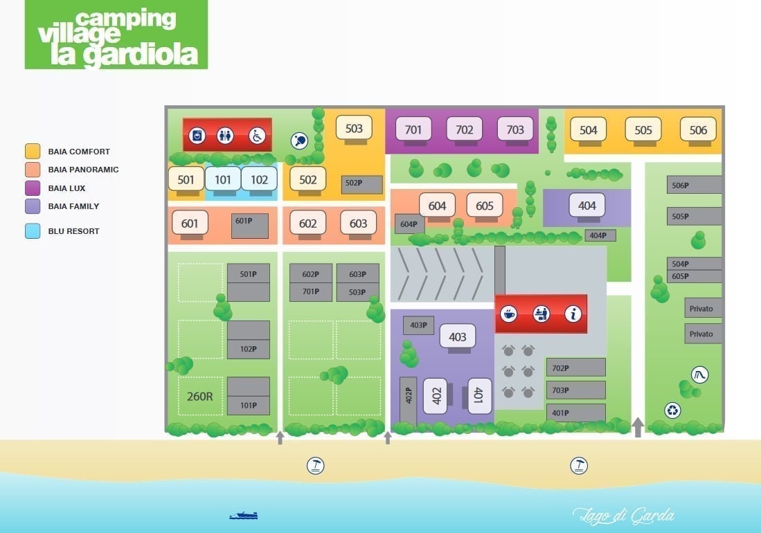 Camping Village La Gardiola in San Felice del Benaco ligt op de oever van het Gardameer en het heeft een rustige en ideale ligging in de Golf Manerba. Dit is een rustige en kleine camping, fijn voor gezinnen met jonge kinderen.