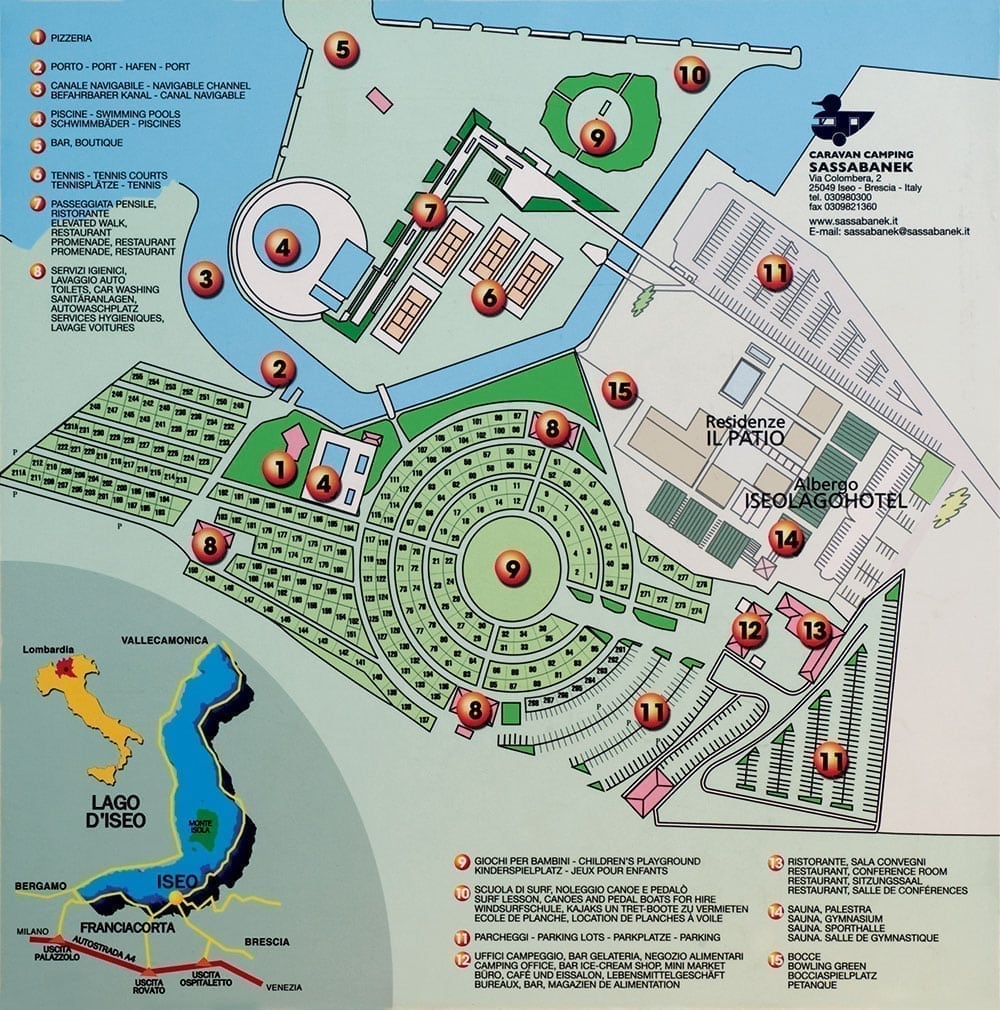 Camping Village Sassabanek aan de oever van het Iseomeer ligt op een paar honderd meter van het historische centrum van Iseo. Het is een grote camping met veel recreatiefaciliteiten en het animatieteam zorgt voor gezelligheid.