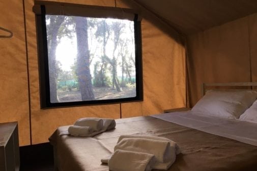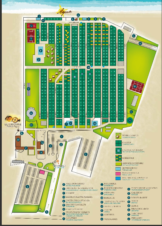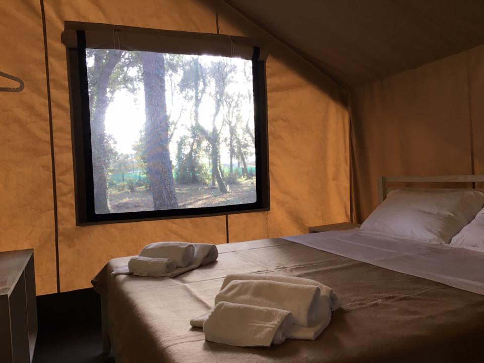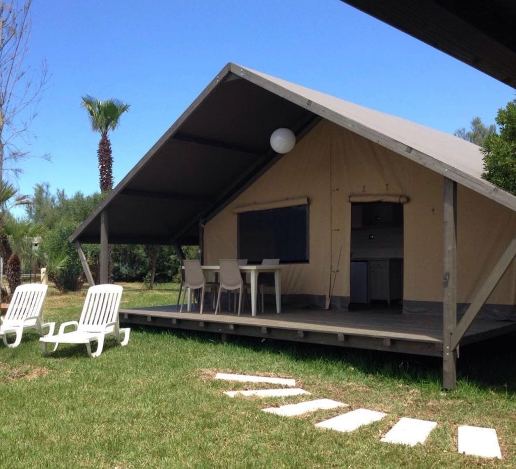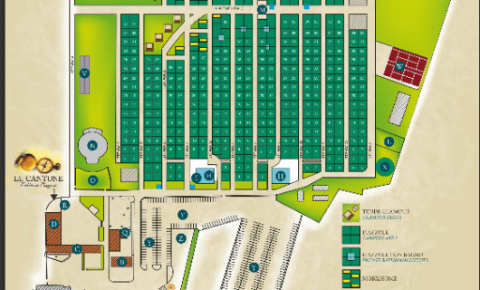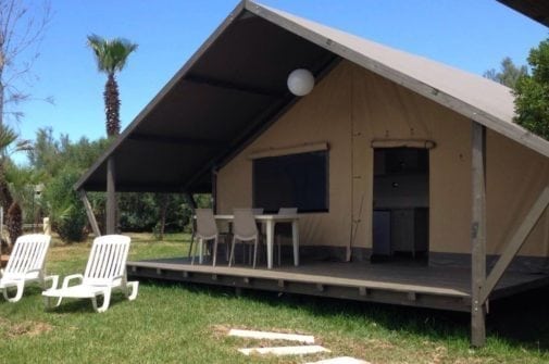 Het kampeerterrein van de camping strekt zich uit over een oppervlak van 15.000 m2. De comfortabele campingplaatsen van circa 8o m2, in de schaduw van tamarisken en olijfbomen, zorgen ervoor dat u in contact met de natuur bent. Ook kunt u vakantie vieren in een stacaravan voor 4 tot 6 personen.