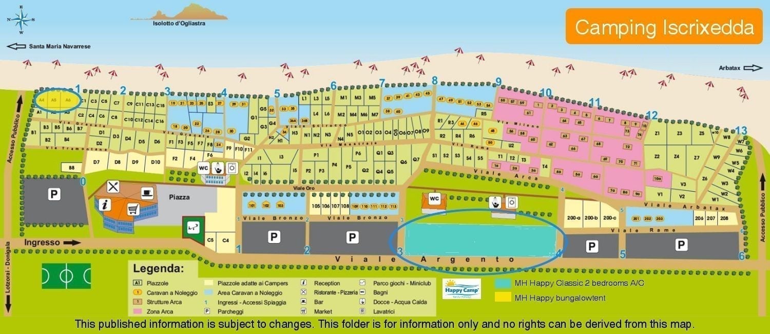 De kampeerplaatsen zijn tussen de 50 en 100 m2 groot. Camping Iscrixedda heeft een bar, speelhal, pizzeria, net sanitair, ruime parkeergelegenheid en is gemakkelijk bereikbaar vanaf de beroemde stranden van Cala Luna, Cala Sisine en Cala Goloritze.