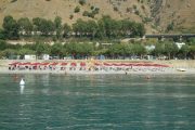 Het kampeerterrein is vlak, langgerekt en verdeeld over een oppervlakte van ruim 20.000 m2 en heeft 350 grote schaduwrijke plaatsen met electra en directe toegang tot het brede strand. Het sanitair op deze strandcamping is uitstekend. Sommige plekken bieden uitzicht op zee, andere liggen dichter bij de spoorlijn.