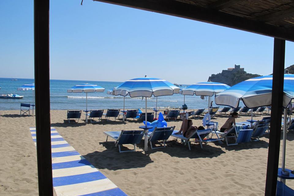 De zee, op slechts 100 meter van Baia Azzurra Club, is kristalhelder, terwijl de rotsen bij het strand een baai vormen die zorgt voor vreugde bij de liefhebbers van vissen of duiken. Het fijne zandstrand gaat geleidelijk de zee in en is perfect voor volwassenen en kinderen.