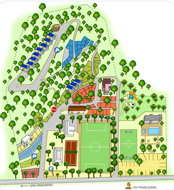 Camping Boschetto di Piemma ligt slechts op 2 km van de prachtige stad San Gimignano. Dit is een terrassencamping in het hart van de Toscane, gelegen middenin een bosrijke omgeving. De camping ligt aan de beroemde ‘Francigena’ wandelroute, u ziet veel wandelaars voorbijkomen maar kunt zelf uiteraard ook de wandelschoenen aantrekken of er op de fiets op uit trekken.