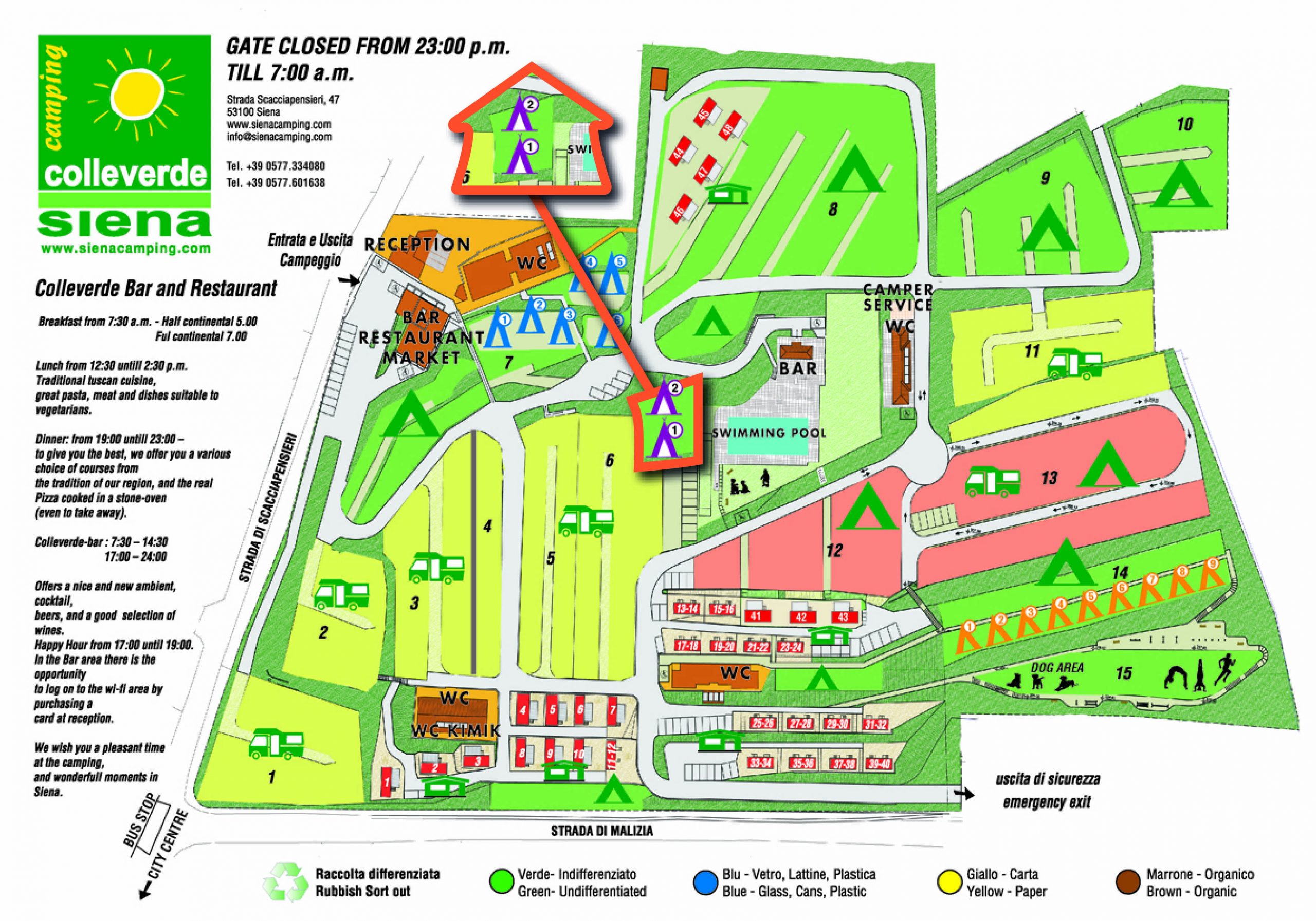 Camping Colleverde beschikt over een aantal verschillende terassen waar u kunt eten en drinken. Daarnaast is er een kleine supermarkt op de camping waar u een antal dingen kunt kopen. Maak ook gebruik van het heerlijk zwembad wat zich op de camping bevindt.