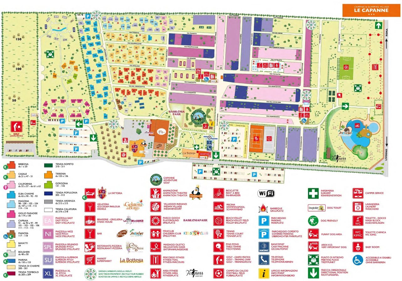 Camping Le Capanne in Marina di Bibbona is een familiecamping gelegen in een parkachtige omgeving met olijfbomen, pijnbomen en eucalyptusbomen. Een ontspannen omgeving om weer op adem te komen, vooral voor gezinnen met kinderen tot 12 jaar.