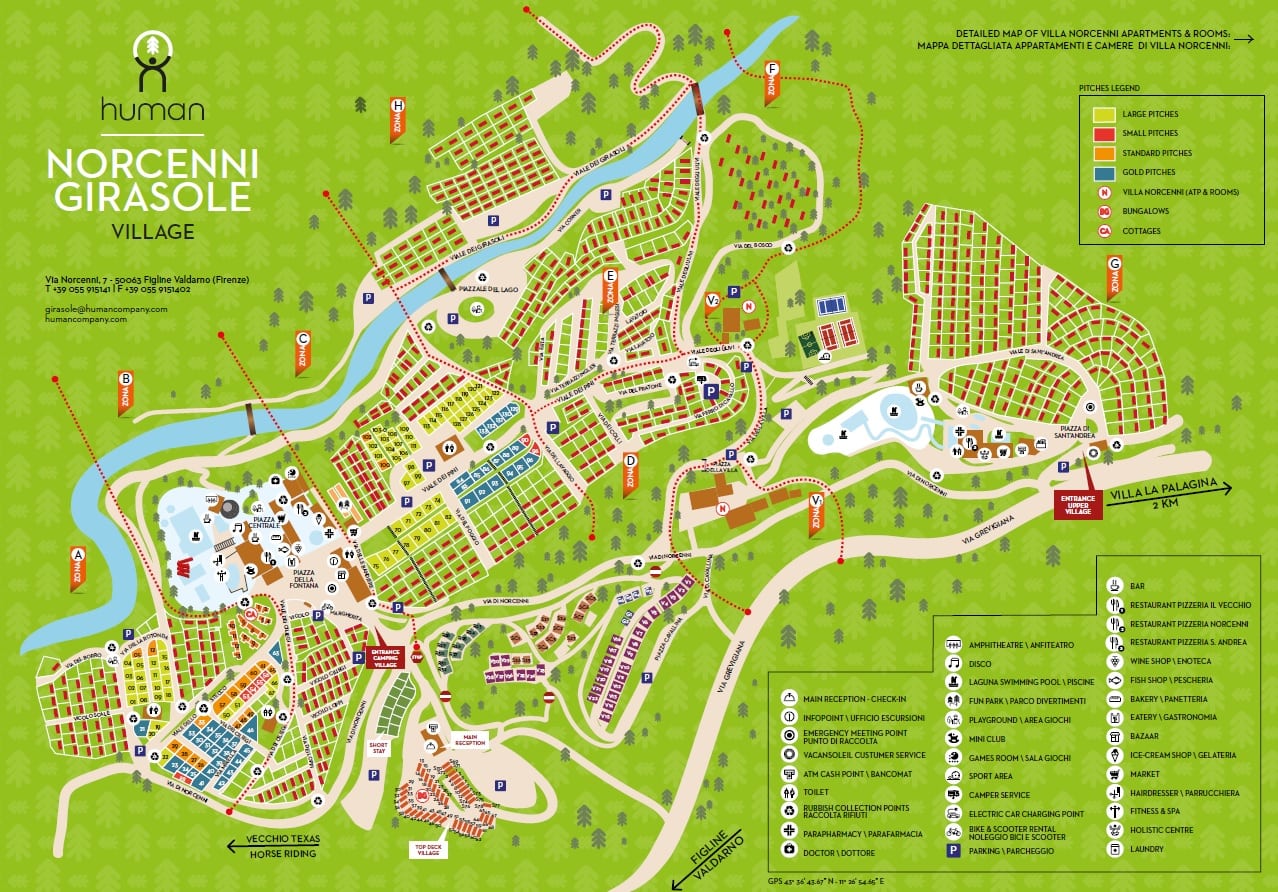 Camping Norcenni Girasole Club is een grote luxe camping waar genieten centraal staat. Het is prachtig gelegen in de heuvels van Toscane bij Figline Valdarno. Het is een terrassencamping met grote vlakke delen, omringd door het groen van de prachtige Chianti streek en op korte afstand van Florence. Dit is bij uitstek een geschikte camping voor het hele gezin omdat er veel te beleven en te bekijken is.