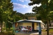 De twee slaapkamers zijn afgezonderd van de woonkamer/keuken. De keuken is voorzien van koelkast, gasplaat en wastafel. Deze is in de woonkamer, welke voorzien is van een eettafel met de bijbehorende zitplaatsen. In de Mobile home is een satelliet televisie aanwezig en de mogelijkheid tot internet. Elke Mobile home heeft een zonnescherm, een eigen ruim terras met tafel en stoelen om van het heerlijke buitenleven te kunnen genieten.