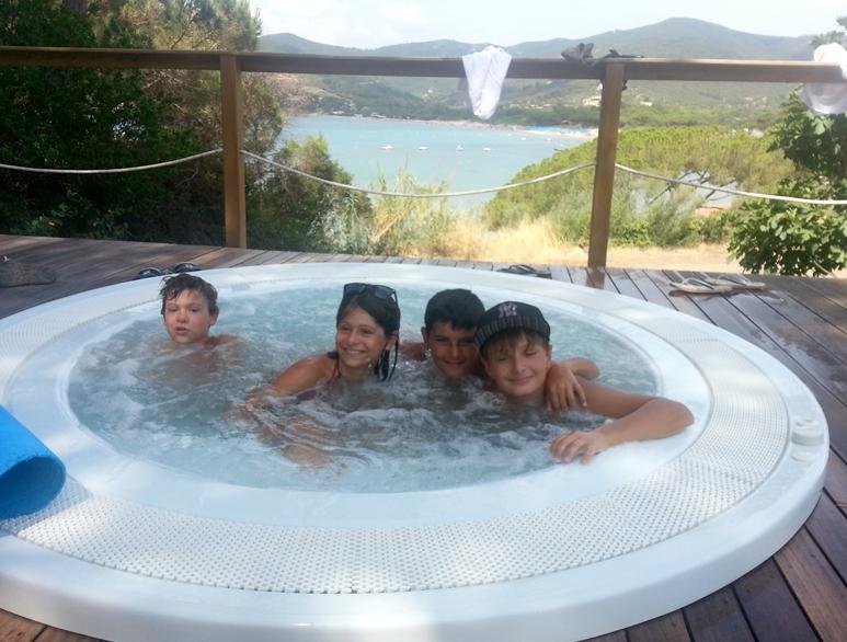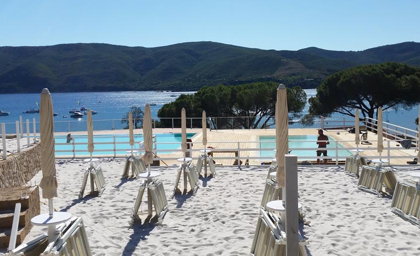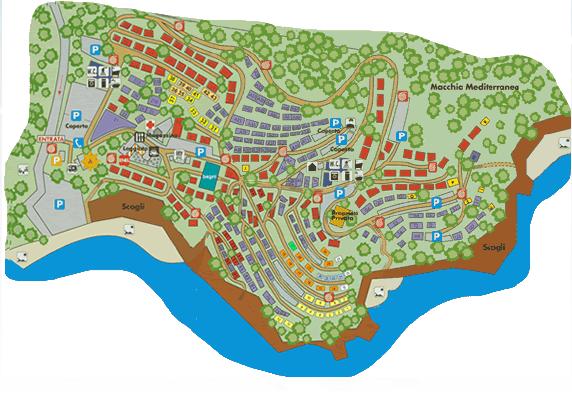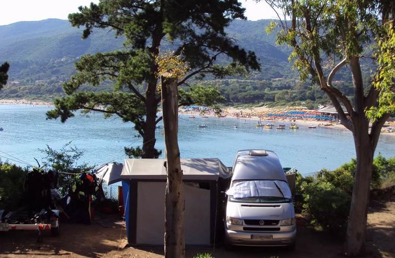 De camping is gebouwd op terrassen, aflopend naar de zee, op loopafstand van het strand van Lacona, dat zeer fijn zand heeft en een van de langste (1.200 meter lang) op Elba is. Het kleinere en meer exclusieve strand van Canata is ook toegankelijk vanaf de camping.
