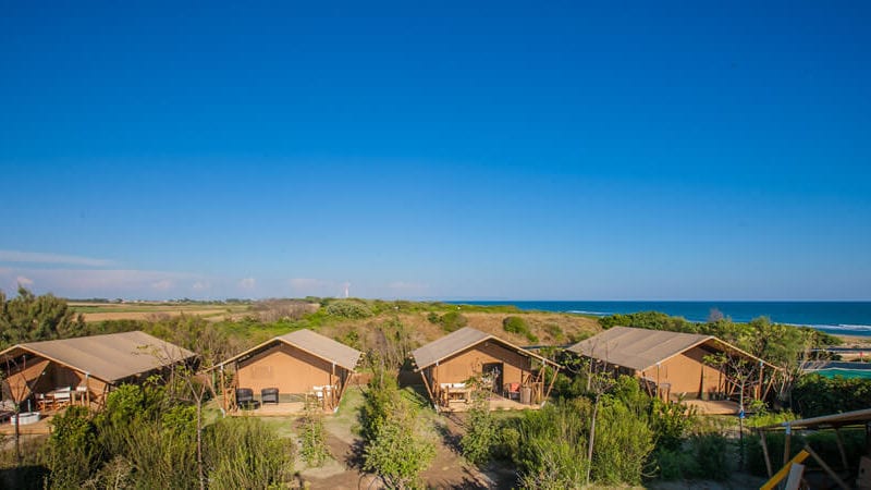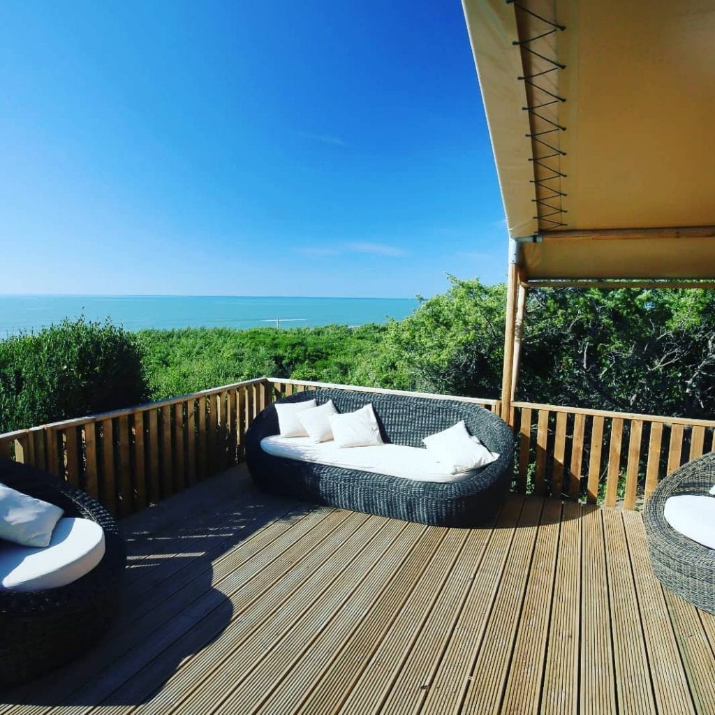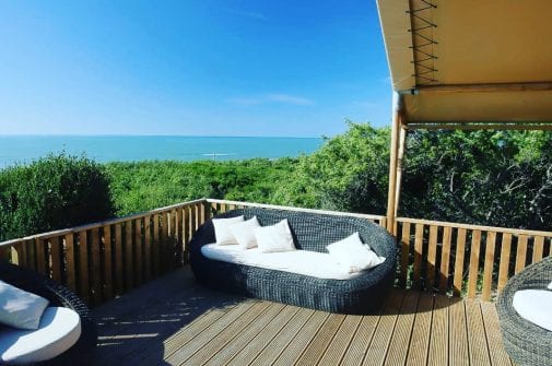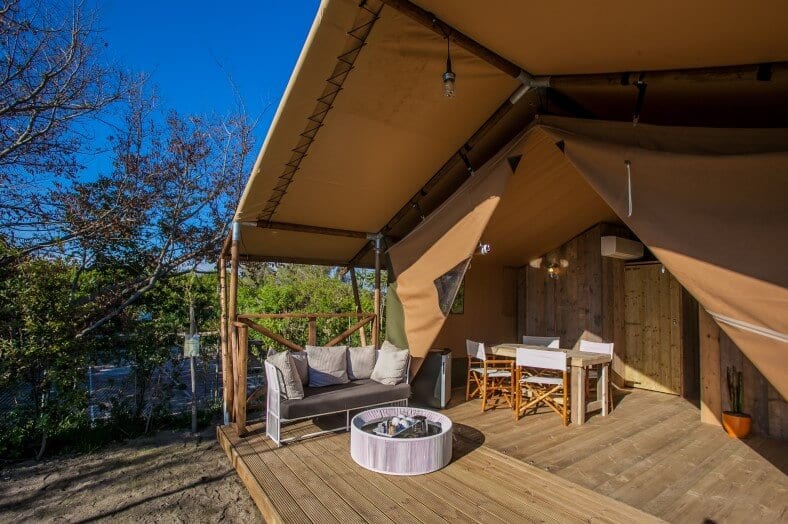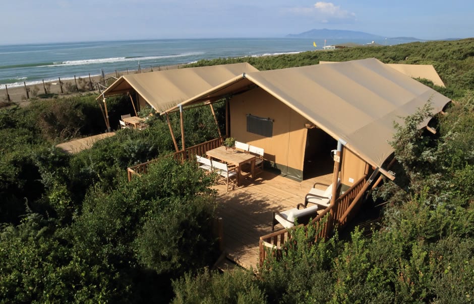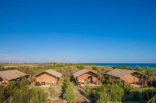 De luxe tenten liggen op slechts 10 meter van het strand en worden omgeven door mediterraan struikgewas. In elk van hen zijn er, naast de bedden, fauteuils, banken, badkamer, tuin, minibar en wifi-internetverbinding (alleen in de gemeenschappelijke ruimte). Er zijn voor degene die daar de voorkeur aan geeft ook kampeerplaatsen, deels in de bos en deels in de duinen.