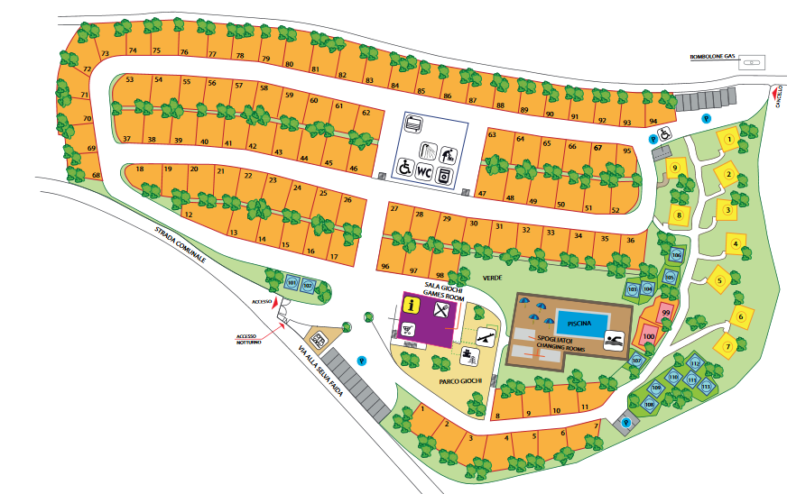 Op deze camping vindt u een bar en een pizzeria met verse pizza’s uit dat het hout gestookte oven, een mini-markt met heerlijke lokale gerechten, een zwembad geschikt voor zowel volwassenen als kinderen, verhuur van mountainbikes, een kinderspeelplaats en een speelkamer.