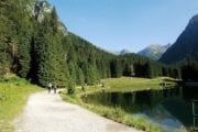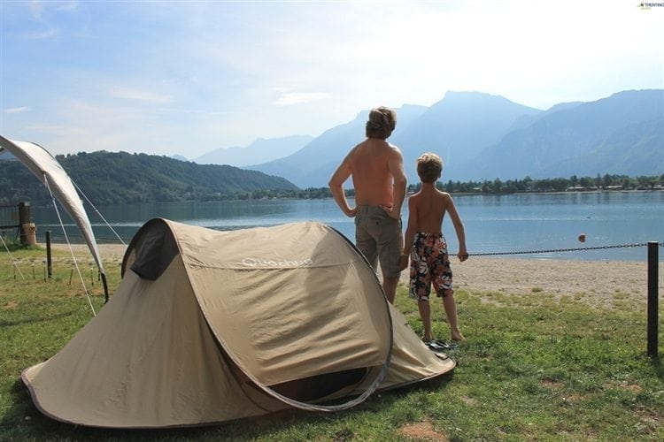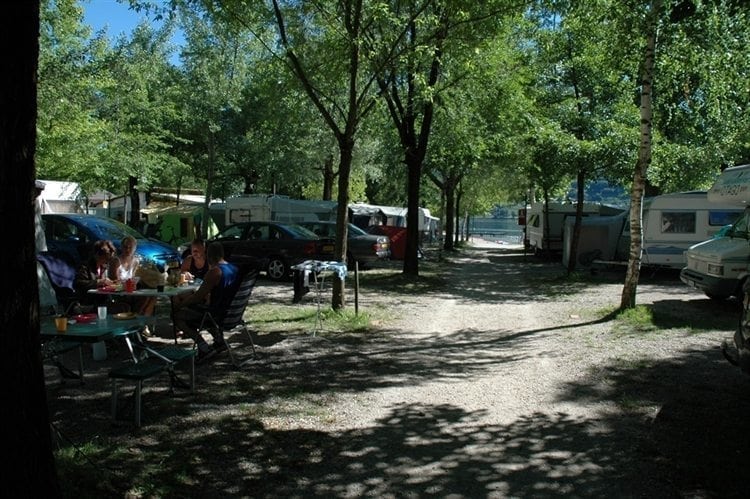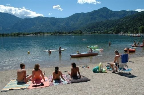 Bij de camping kunt u heerlijk zwemmen in het meer. Ook voor kinderen is dat geschikt want het kindergedeelte is afgebakend met boeien en tussen twee houten steigers. Op het (kiezel)strandje waar de bergstroom Mandola uitmondt kunt u in alle rust relaxen en genieten van het adembenemend mooie uitzicht.