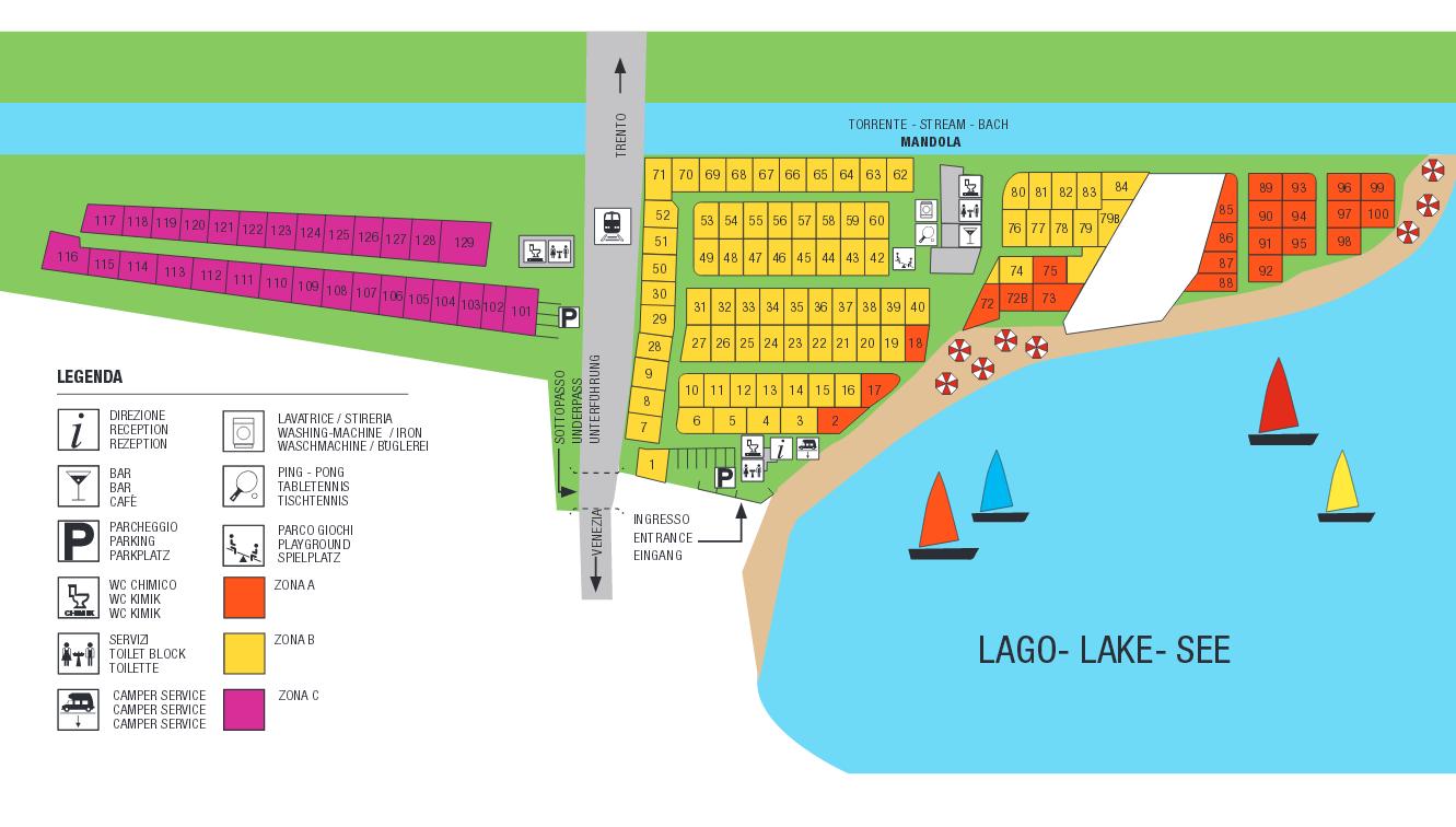 Camping Penisola Verde ligt aan het Caldonazzomeer in prachtige natuur. Reserveer hier rechtstreeks bij deze familiecamping zelf.