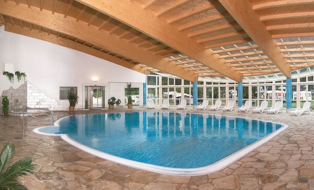 Het enigszins glooiende kampeerterrein is terrasvormig aangelegd en wordt omgeven door boomgaarden en bossen. Vanaf de ruime kampeerplaatsen (met aansluiting voor water, elektriciteit en kabel-TV) heeft u vrij uitzicht op de bergen. Het moderne sanitair is heel netjes verzorgd. Het zwembad op de camping maakt het plaatje voor uw vakantie compleet.
