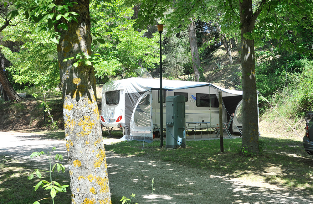 Het kampeerterrein van deze kleine camping in Umbria ligt deels tegen een heuvel op, deels op terrassen. De meeste plaatsen zijn schaduwrijk, voorzien van electra en bieden een prachtig uitzicht op de vallei. Tijdens het hoogseizoen is er ook een bar-tabakswinkel met zelfgemaakt ijs en een minimarkt met alle benodigdheden. Bovendien is er een goed, traditioneel restaurant.