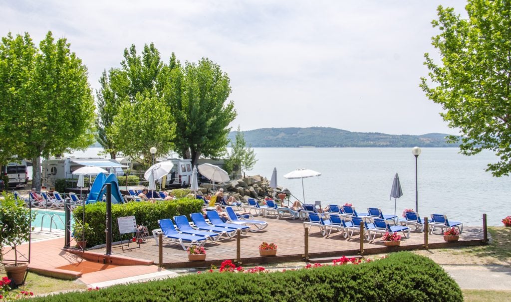 Bij het zwembad met kinderbad, waterglijbaan en bubbelbad vindt u verkoeling. Vervolgens kunt u genieten van een hapje of een drankje bij het uitstekende restaurant, met terras aan het meer. Vanaf de camping kunt u lopend of met de fiets naar Passignano, dit is ongeveer 800 meter. Een excursie naar Perugia of Assisi is ook zeker een aanrader.
