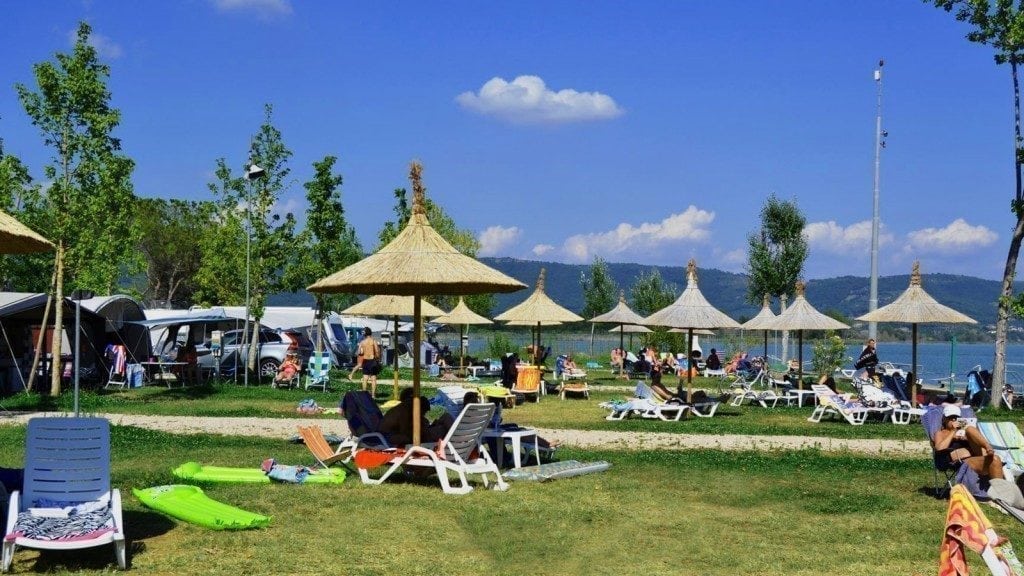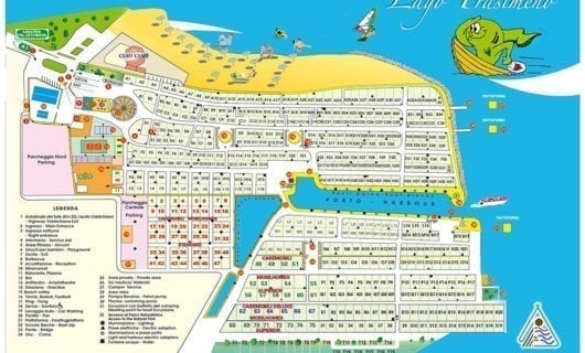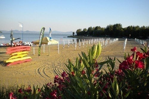 Het strand van de camping ligt aan het Trasimenomeer er is een steiger en een afgezet zwemgebied voor de mensen die op de camping verblijven. U kunt dus heerlijk ontspannen op het zandstrand. Ook is er een haven waar u kunt waterskiën, kite boarden, zeilen of kanoën. Ook kunt bij de haven op het terras zitten en genieten van het heerlijke uitzicht van het Trasimeno meer.