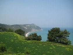 De kustlijn van Marche is ongeveer 170 kilometer lang en langs de gehele kust staan mooie palmbomen. De kust heeft overal wat anders te bieden. De lange zand- en kiezelstranden worden op twee plaatsen onderbroken door een woeste rotskust: bij de Riviera del Conero, het schiereiland met de imposante witte steenrotsenen, en ten noorden van Pesaro (Monte San Bartolo). De hoge kliffen lopen tot aan zee en vormen zo een natuurlijke onderbreking van de lange zandstranden. Hier kunt u schitterend wandelen en vervolgens een frisse duik nemen bij idyllische strandjes. Bovendien zorgen de pijnbossen voor een aangename verkoeling op de kampeerterreinen en de lage mediterrane begroeiing verspreidt een heerlijke geur.
