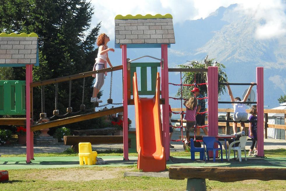 Buiten is er een super zonneterras met sensationeel uitzicht over de bergtoppen, een speeltuin voor alle leeftijden, voetbalveld, jeu-de-boules, beach volley, basketbal en 2 barbecue-zones. Binnen vindt u een gezellige bar/woonkamer, de recreatiezaal met gratis Wi-fi, en het “hoekje van de Pasha”, waar u heerlijk kunt lezen of ontspannen. Bij de bar kunt u tevens typische producten uit de regio Valle D’Aosta kopen.