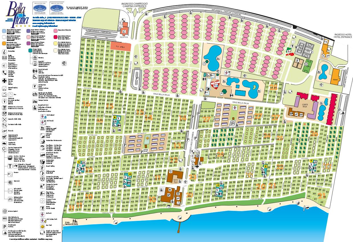 Camping Bella Italia in Peschiera (Veneto) aan het Gardameer biedt u de mogelijkheid om even het alledaagse leven te vergeten en een duik te nemen in een oase van ontspanning. Rust voor volwassenen, pret en opwinding voor kinderen. Op deze groot opgezette familiecamping hoeft u zich geen moment te vervelen.