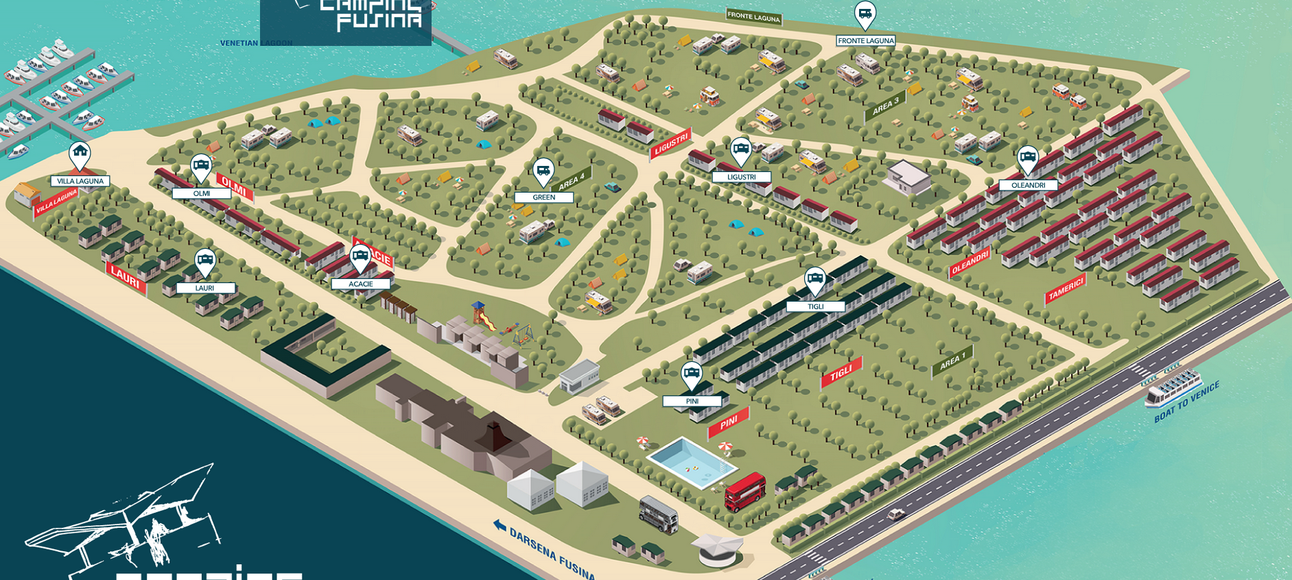 De camping is het hele jaar geopend en is verbonden met het centrum van Venetië, met een lijndienst van boten is het een tocht van 20 minuten. Een ideale uitvalsbasis voor excursies naar Venetië, Riviera del Brenta, Padova en Treviso.