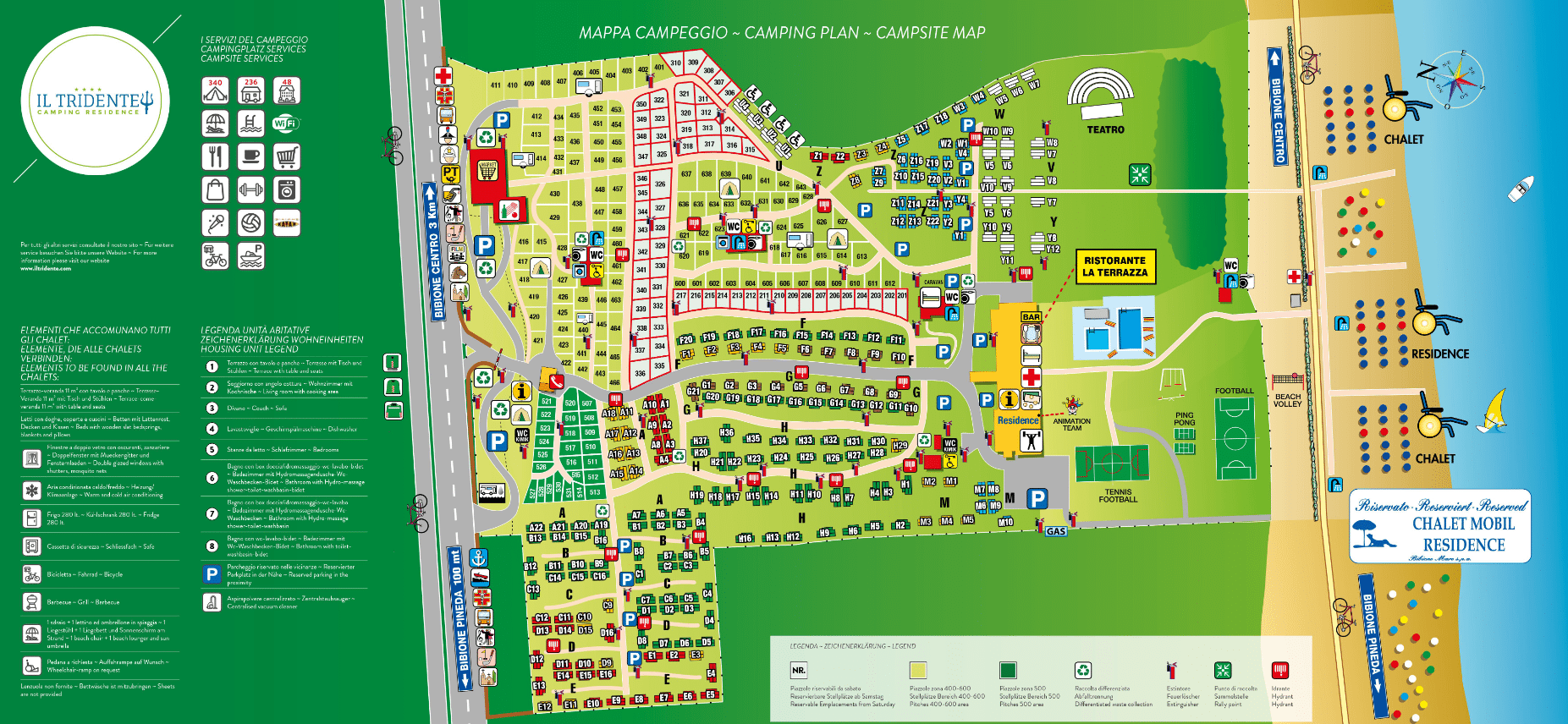 Camping Il Tridente in Bibione (Veneto) biedt u uitzicht op de zee. De camping is gelegen in een pijnbomenbos, ideaal voor een vakantie in de natuur en de buitenlucht, in een aangename familiaire omgeving. Dit is een goed verzorgde en rustige camping met faciliteiten gewijd aan groot en klein, aan een mooi zandstrand.