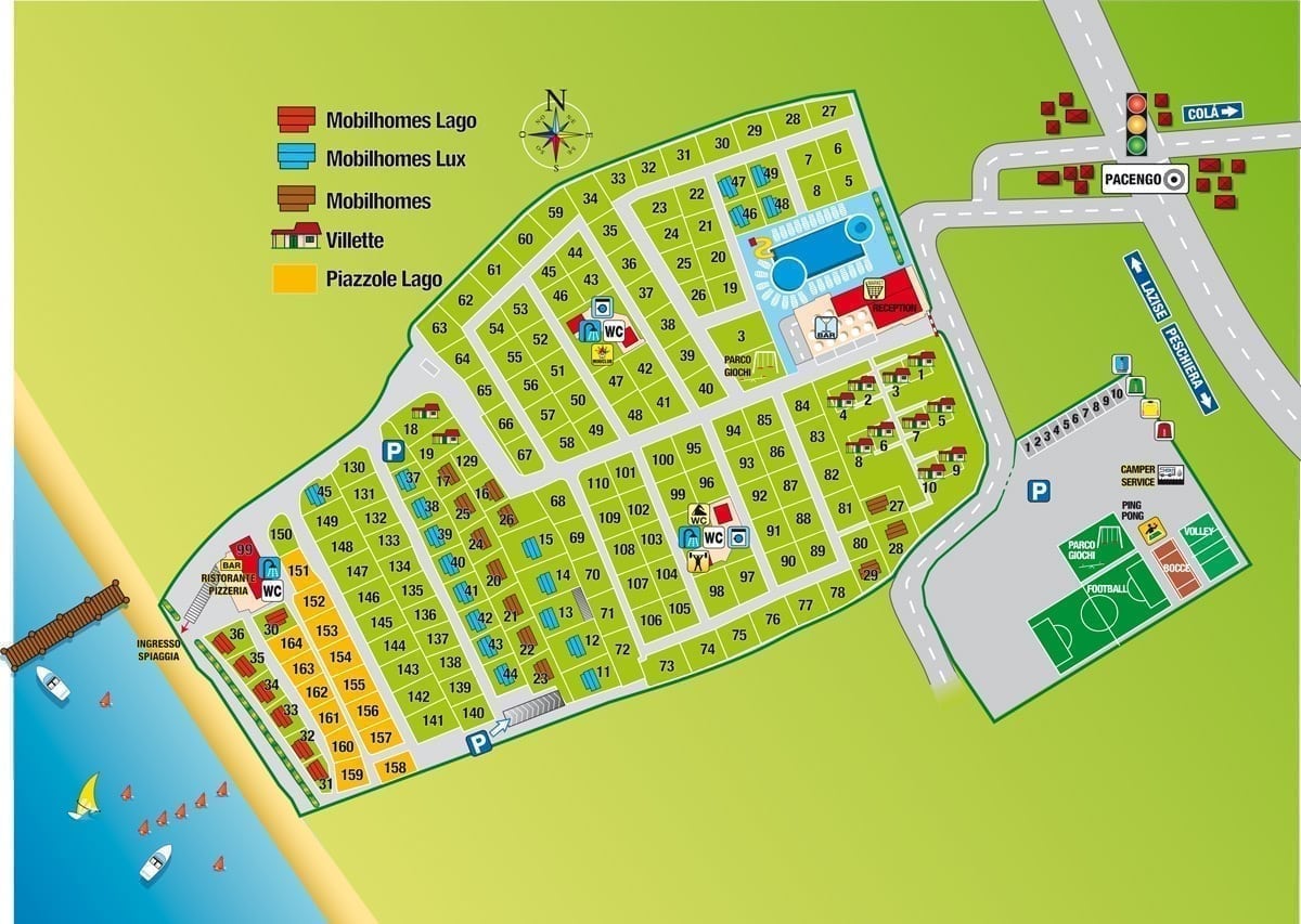 Verder vindt u op Camping Le Palme nieuwe sanitaire voorzieningen en een wasserette. Om te genieten tijdens uw vakantie zijn er een zwembad met hydro-massage en een speeltuin met animatie voor de kinderen (hoogseizoen). Tegenover de camping liggen sportvelden. Het pretpark Gardaland (op 1,5 kilometer) is zeker een bezoek waard. Het centrum van Pacengo ligt op loopafstand.