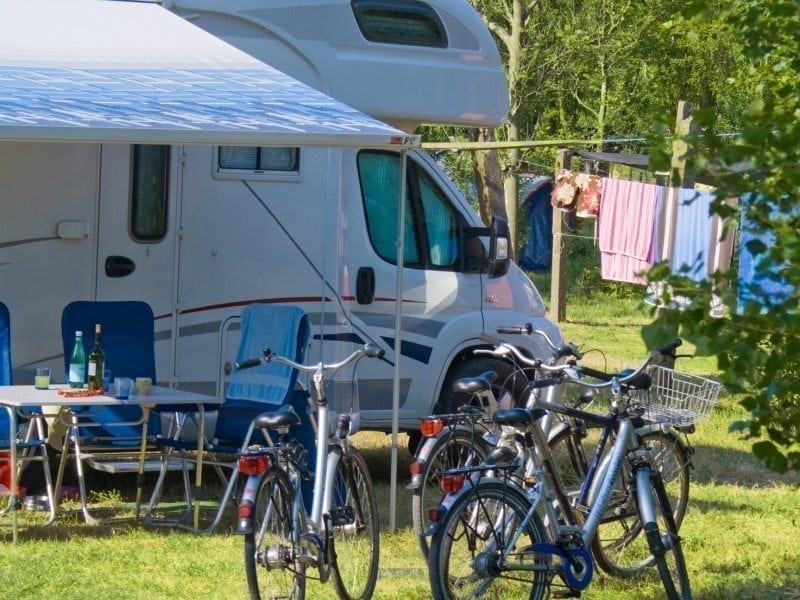 Nee Er zijn geen speciale voorzieningen voor de camper.