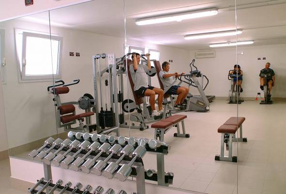 Ja Er is een fitnessruimte met sporttoestellen.