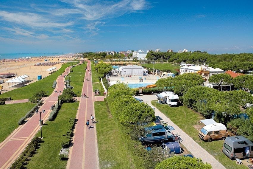 Villaggio Turistico Internazionale bevindt zich 150 meter van het centrum van Bibione en ligt meteen aan het geleidelijk aflopende zandstrand van Bibione, en heeft ook een eigen strand. Deze mooie grote camping in Veneto is ruim opgezet en heeft maar liefst 4 sterren. Het is geschikt voor gezinnen, jong en oud.