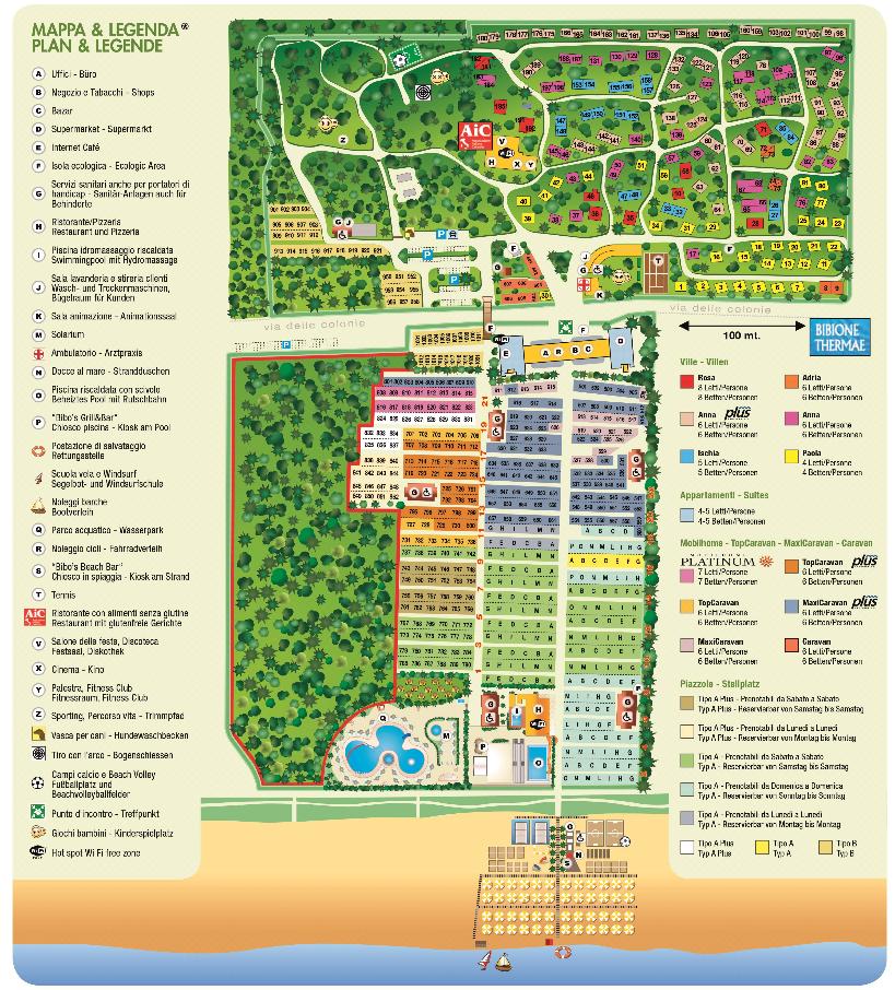 Villaggio Turistico Internazionale bestaat uit 2 delen: stacaravans en kampeerplaatsen in de buurt van het strand. De bungalows daarentegen staan in het andere deel, dat als dorpje is ontworpen met onder andere een gezellig restaurant en een discotheek.