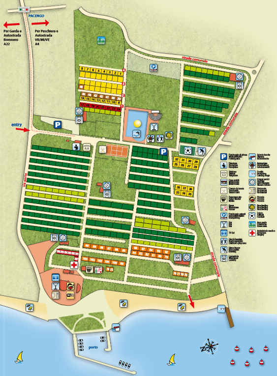 Op Eurocamping Pacengo vindt u een groot zwembad met meerdere glijbanen en een grote speeltuin waar alle kinderen hun energie kwijt kunnen. Vanaf het terras van het restaurant heeft u een geweldig uitzicht over het meer. Het animatieteam verzorgt dagelijks leuke activiteiten voor de kinderen en geeft ’s avonds vaak ook shows voor de volwassenen en sportievelingen kunnen hun energie kwijt op de onlangs gerenoveerde tennisbaan of op het voetbalveld of volleybalveld.